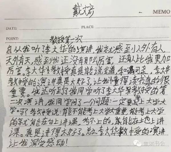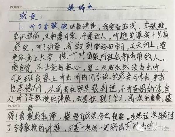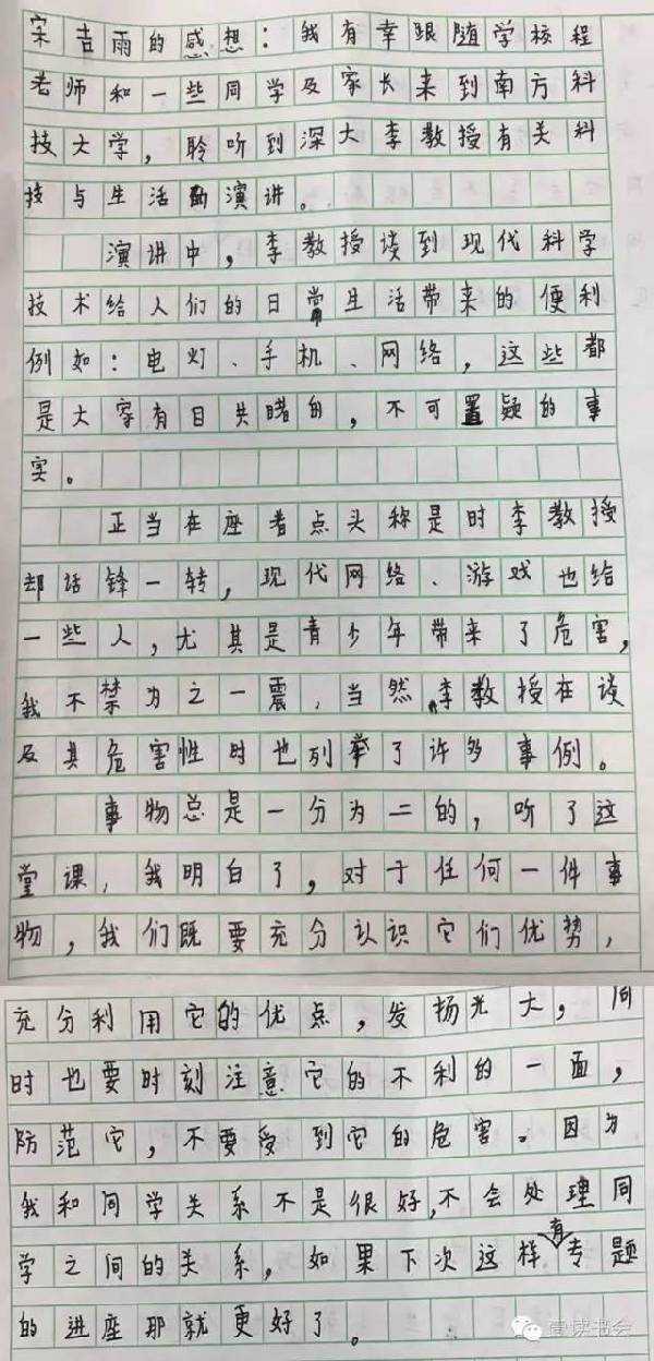 近日,多位小朋友特地就這次講座表達感想。他們紛紛盛贊講座深刻,令其受益匪淺,“深受感動”。他們紛紛在感想里提到李教授平易近人,講課精彩,更在聽完李教授的課后開始反思現代科技與當代生活,提升自身思想和文化水平。