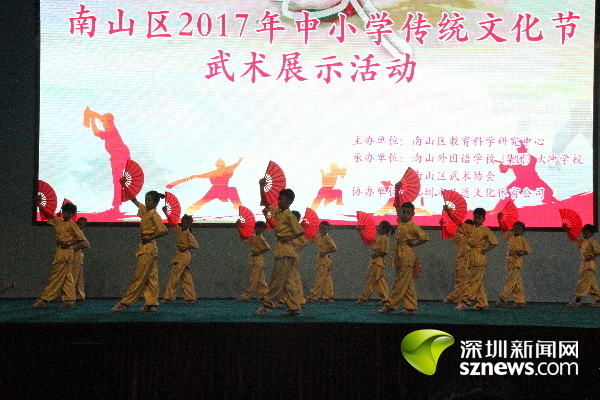 南山區2017年中小學傳統文化節武術展示活動由南山區教育科學研究中心主辦,南山外國語學校(集團)大沖學校和南山區武術協會承辦。南山區教育科學研究中心主任余耀賢介紹,為進一步弘揚優秀中華傳統文化,落實立德樹人的根本任務,南山區教育局舉行了首屆傳統文化節活動,開展了經典詩詞特色展演、中小學書法大賽、中國戲曲和民族樂器比賽、中小學生圍棋大賽、傳統文化沙龍和專家報告等形式多樣的活動。