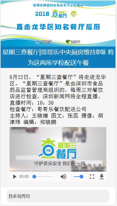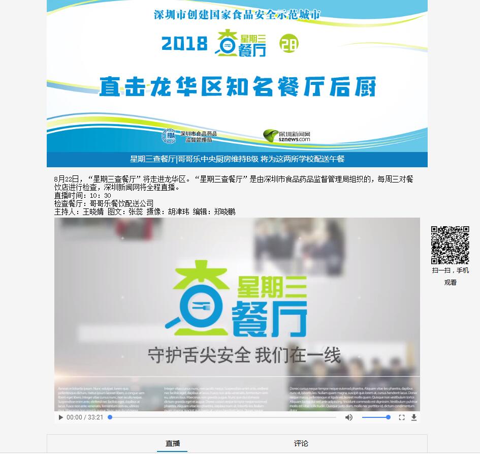 “星期三查餐廳”節目組采用深圳新聞網直播平臺,記者使用手機或攝像機進行拍攝,照片、直播視頻、文本內容等回傳后方編輯,編輯在直播平臺上進行內容整理,將執法行動全程進行視頻+圖文全程直播。網友無需下載任何客戶端,可通過Internet直接在PC、移動客戶端等設備上實時觀看執法過程,并能在線對直播內容進行評論。