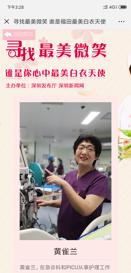 在福田有一群這樣暖心的人,TA們沒有精致妝容,卻有溫暖笑容,沒有華麗衣衫,卻有簡潔大方制服,很少有人能記住TA們口罩下的臉,卻能在TA們的幫助下解決問題。TA們每天傳遞著藥物和器械,卻托舉著每一位患者的健康之夢。TA們是誰?TA們就是我們的“白衣天使”們~為迎接2018年“5.12”國際護士節(jié),弘揚南丁格爾救死扶傷的人道主義精神,深圳新聞網(wǎng)聯(lián)合深圳發(fā)布廳,在福田區(qū)范圍內(nèi)開展“誰是你心中最美白衣天使”評選活動