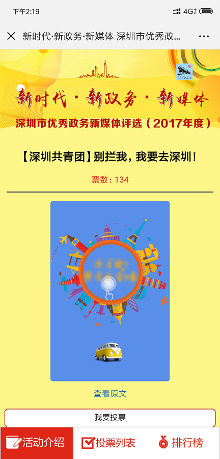 作為中國"最互聯(lián)網(wǎng)城市〃,深圳近年來大力建 設(shè)政務新媒體平臺矩陣,不斷建立健全工作機制,搭 建起為市民服務的新渠道、新平臺,涌現(xiàn)出許多優(yōu)秀 的政務新媒體。廣大市民網(wǎng)友,有哪些政務微信么, 讓你"欲罷不能〃,有哪位小編讓你〃刻骨銘心〃, 有哪些作品讓你"秒轉(zhuǎn)秒贊"?請為他們投上寶貴一 票吧!本次投票活動作為"新時代新政務備體"—— 深圳市優(yōu)秀政務新媒體評選(2017年度)活動的重要 組成部分,其結(jié)果將作為專家評審類獎項評選的重要 參考細,權(quán)重占比50%。