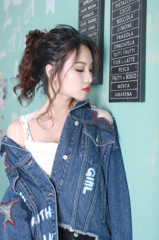 改造后的芷苑小姐姐大走街頭風,一頭卷發胡亂綁成高馬尾,搭配星星破洞oversized牛仔外套&漸變牛仔skinny,碰撞上大紅唇色,一改之前的乖巧模樣。