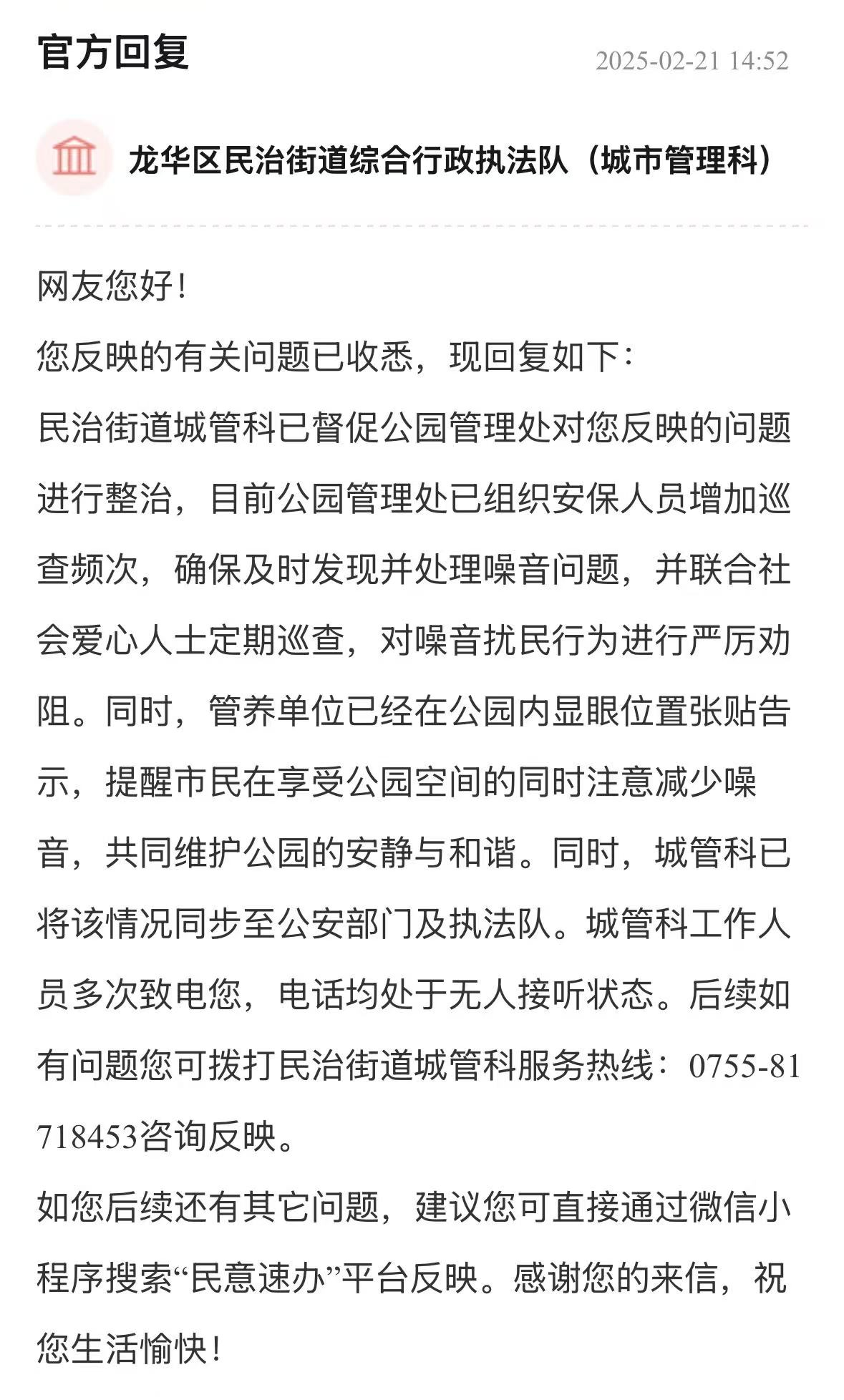 案例點評:街道以“即時處置+源頭預防”雙軌并進:安保巡查形成震懾,警示標識強化行為引導,多部門聯動執法。不過,噪音問題易反彈,也限制了市民業余活動,建議后續建立長效管理機制,如分時段音量管控、智能化監測設備等,將“柔性引導”與“剛性約束”結合,切實守護鬧靜皆宜的公共空間秩序。